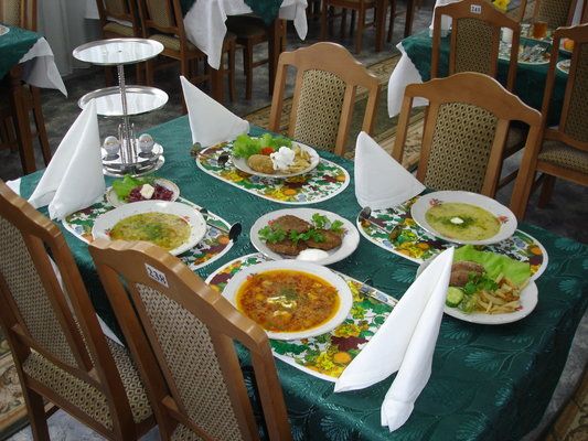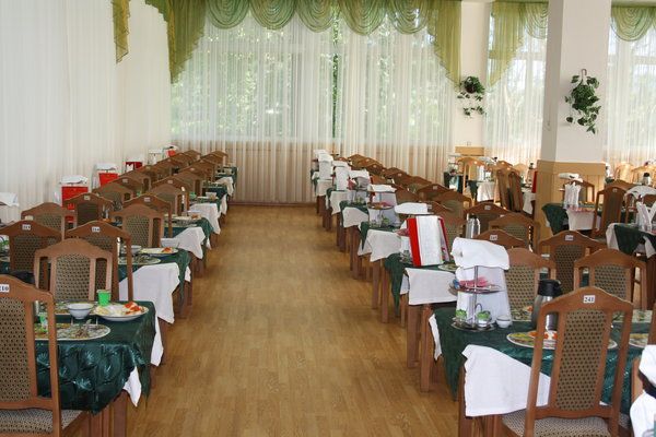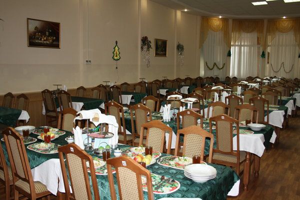 В санатории функционируют столовая с пищеблоком и тремя обеденными залами на 400 посадочных мест. Укомплектованность поварами и кондитерами, их профессиональный уровень, оснащенность пищеблоков технологическим оборудованием, позволяют в полном объеме обеспечить приготовление лечебных и диетических блюд.