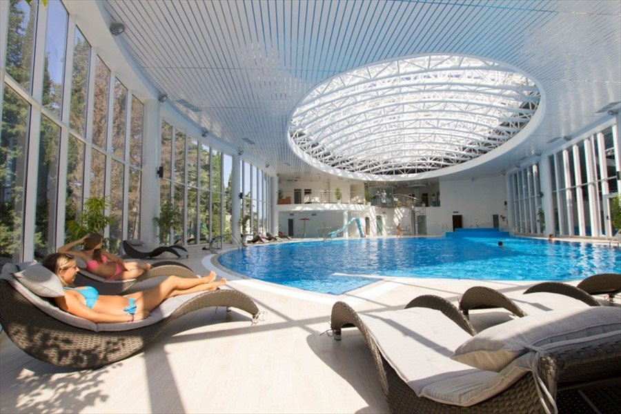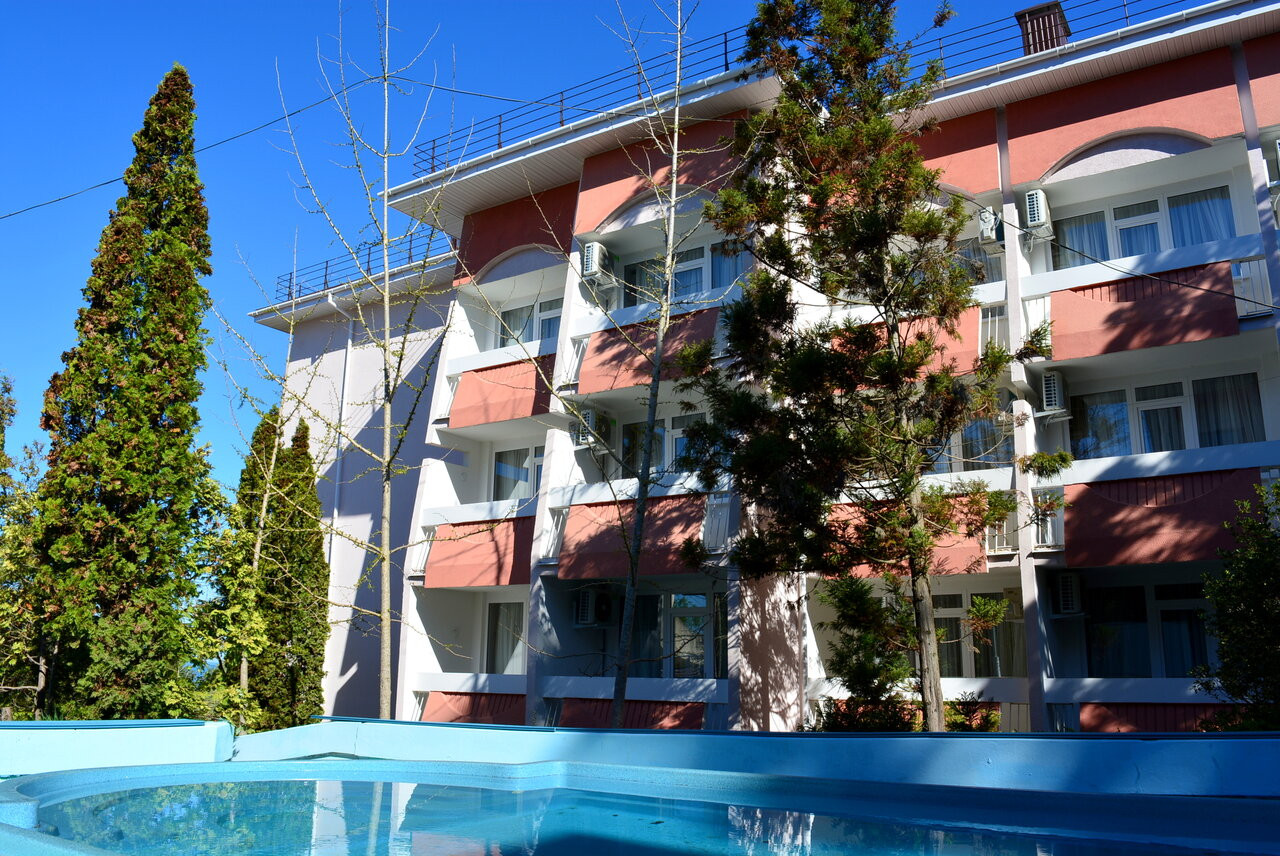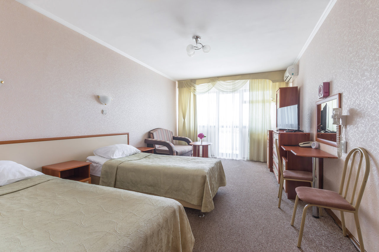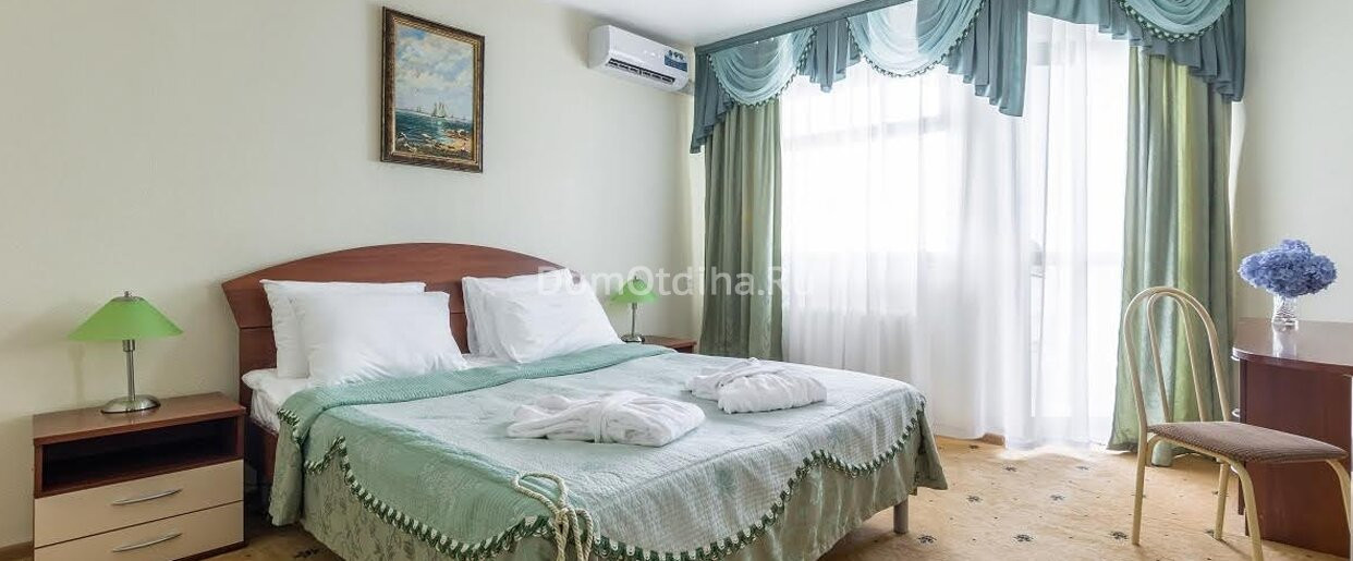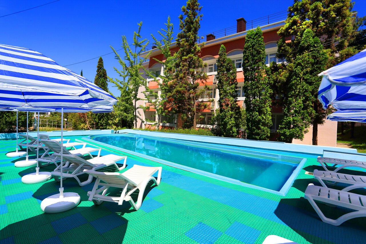 Отличный санаторий, хорошее соотношение цена и услуги, персонал вежливый, номера уберают ежедневно, собственный пляж. Отдыхала 15 дней, была в восторге. Есть бассейн. Питание шведский стол. Очень вкусно.