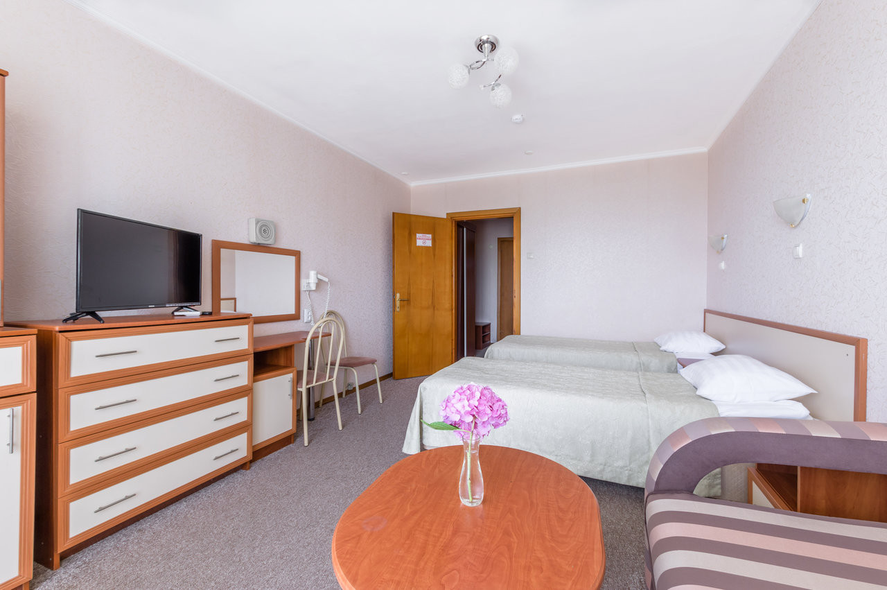 Если хотите попасть в прошлое, в 90е, если вам нравятся времена упадка и разрухи, если любите уныние и увядание - вам сюда) разрушенные дороги санатория, трещины везде, можно упасть и сломать что-нибудь. Когда темнеет - не надейтесь погулять, ТК там нет освещения дорог!!! Вы идете и не хрена не видете! Я так провалилась в канаву, сбоку от дороги, смешно, но факт. Здания внутри не ремонтировались со времен 80х. И снаружи тоже , только лечебный корпус отремонтировали, а жилые корпуса - страшненькие. Номера внутри - некрасивые, как будто в захалустной деревне у умирающей бабушки. Я была там бесплатно с ребенком инвалидом и лучше бы не была, даже за бесплатно!