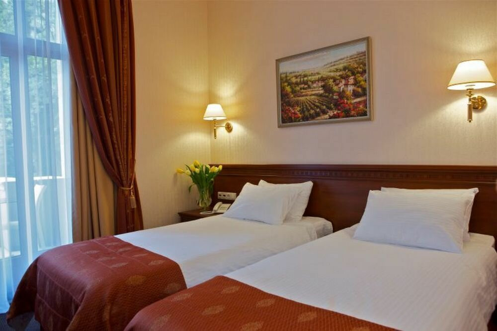 У нас была путёвка с26 декабря по3 января, т. е. без лечения. В санаториях бываем ежегодно, есть с чем сравнить. Хотелось отметить хорошее питание:вкусное, разнообразное, можно выбрать и тем, кто ограничен в еде. Достойно на наш взгляд, была организована перед праздником встреча с дедом морозом и снегурочкой, а также стол перед завтраком 1 января. Хороший бассейн. Номер был тесноват:жили вдвоём, а стул был один. Хорошо, что есть питьевой бювет, вода понравилась-спасала от изжоги. Пожелания тем, кто работает на рецепшен и в регистратуре:будьте повнимательнее, улыбайтесь отдыхающим. Ведь вы первые, кто встречает гостей. Ещё пожелание-пропускать такси к главному входу, а не останавливать за шлагбаум ом, ведь "яндекс" федеральная сеть со всеми атрибутами. Пришлось с вещами идти, особенно трудновато, когда вселялись-под горку подниматься