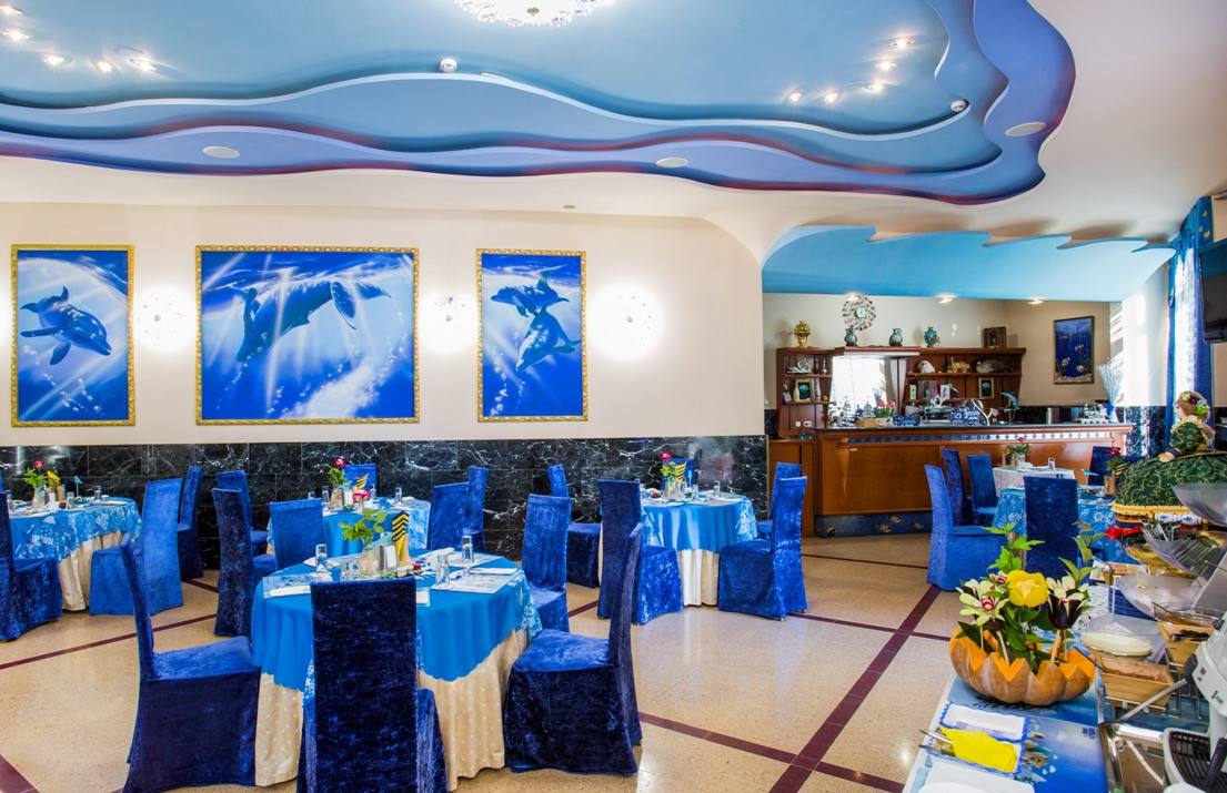 Прекрасный, яркий, уютный, чистый, большой! Прекрасный персонал, очень вкусно и большое разнообразие блюд. Павлины ходят по территории, ручные, очень хороший зоопарк! Все делается с любовью. Аквапарк очень хороший, минус пускают с улицы платно посторонних. И нет пандусов для колясок, приходится таскать детей и коляски! Море далеко, но ходить полезно! Пляж очень хороший, свой с огороженной территорией, все условия для отдыха,