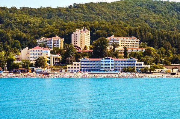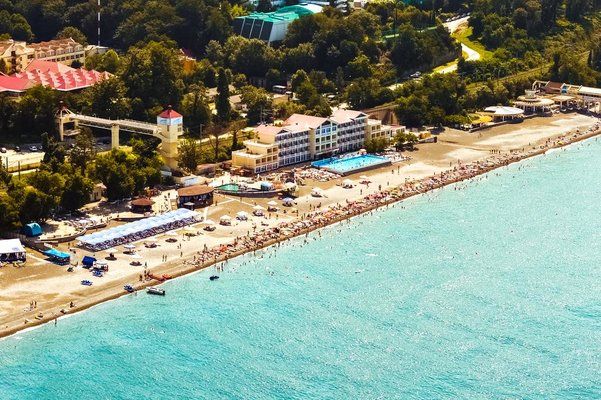 А главное – оборудованный душевыми и туалетом, кабинками для переодевания и шезлонгами собственный галечный пляж санатория в 250 метрах от корпусов.