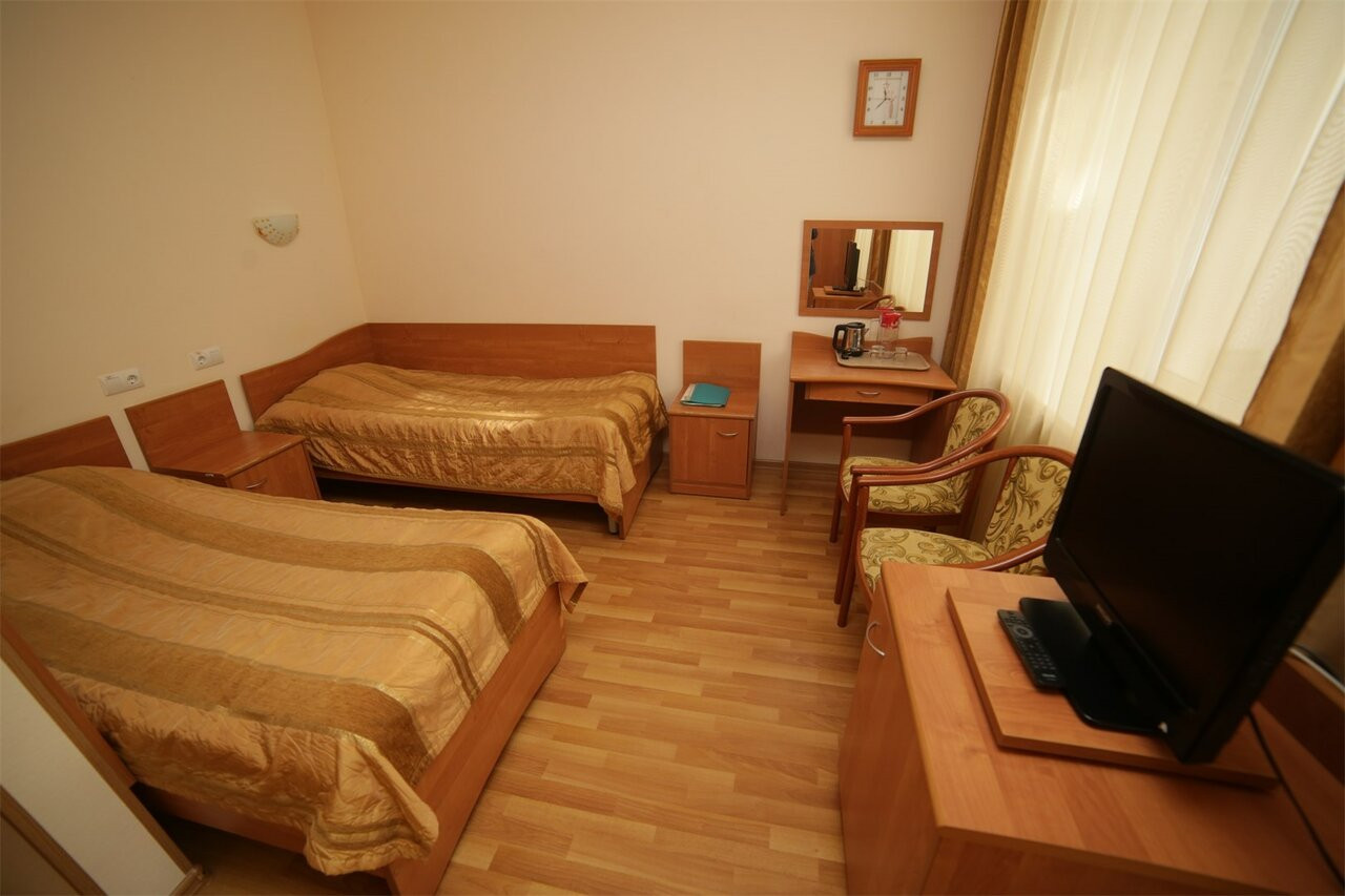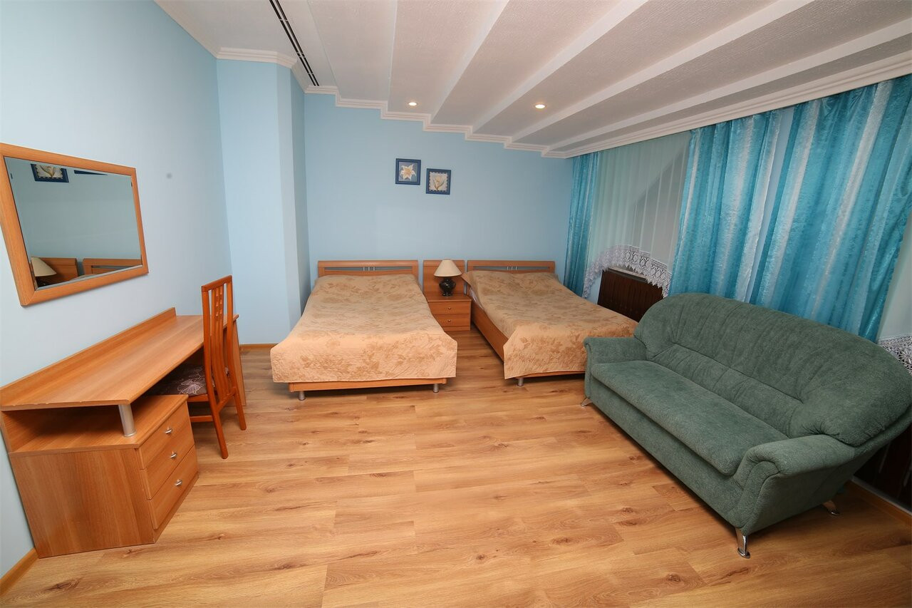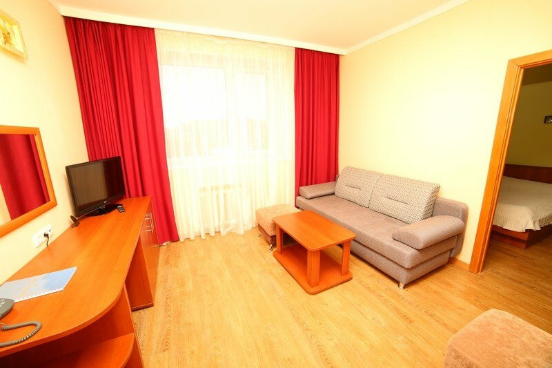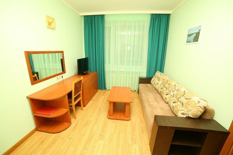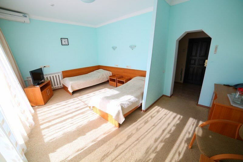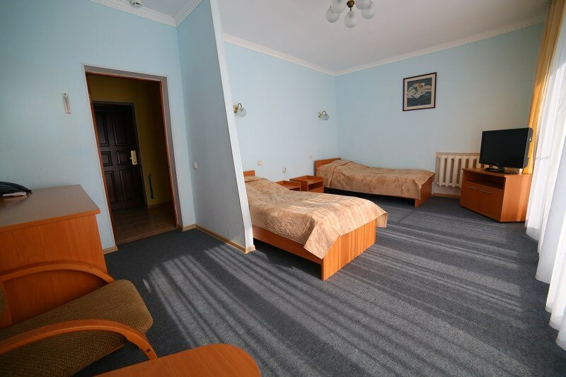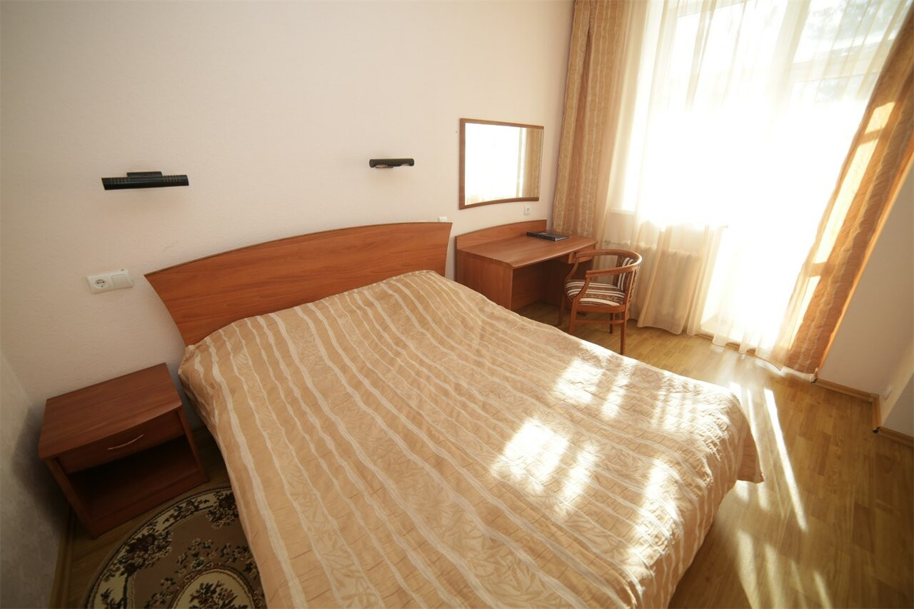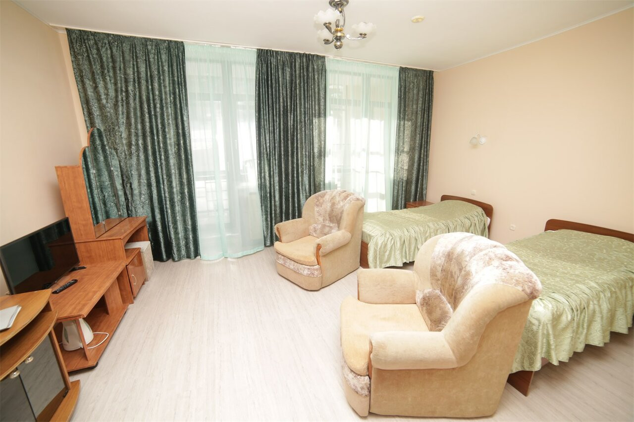 Отдыхали с 1.09.19 по 7.09.19.Забронировали 2х местный-2х комнатный номер в 7корпусе(на 2х взрослых и 2х детей)Выбрали этот корпус т.к в нем своя столовая,массажный кабинет и детская игровая комната)В путевку входило питание,проживание и лечение(оздоровительная).Приехали поздно вечером,расселили быстро,номер соответствует фотографиям на сайте.2 просторные комнаты.В одной комнате 2 1.5 кровати,в другой 2х спальный раскладной диван,туалет с ванной,фен,холодильник,чайник,телевизор,сейф,шкаф.Большой болкон с видом на лес.Утром оформились в "Старте".