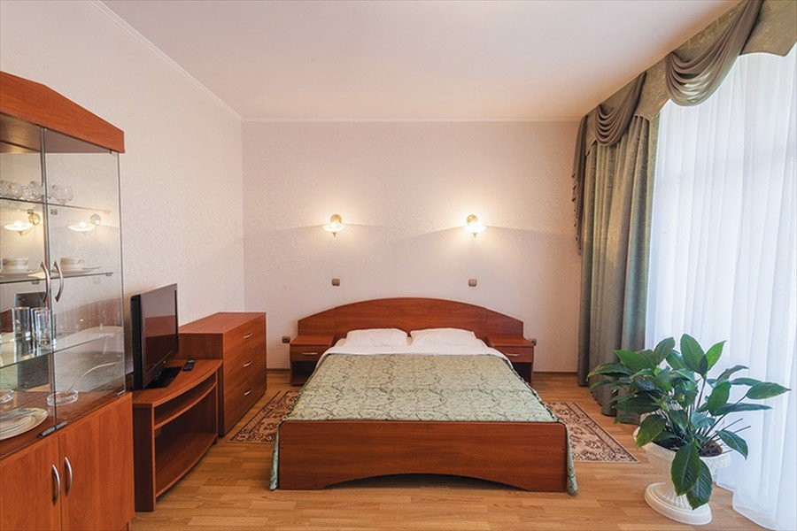 Супер санаторий. Отличная балънеология. Номер- сын увидев фото даже присвистнул: 2 комнаты, буфет/сервант с посудой для попить/перекусить. Шведский стол с хорошей разнообразной едой. Местоположение понравилось- минут 20 до вокзала и набережной для пр;нудителъной прогулки в центр. Иначе многие ленятся гулять. Воздух влажный, я почти не кашляла.