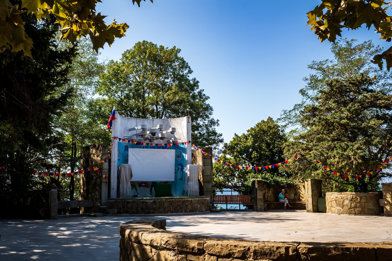 Расположен на берегу Черного моря, в курортном поселке Шепси, 11 км от г. Туапсе, в экологически чистом районе, прекрасная бухта, с уникальным климатом, нет таких резких погодных изменений, теплее чем в Анапе и не так ветрено, как в Сочи. Пляж галечный, море прозрачное, глубокое.