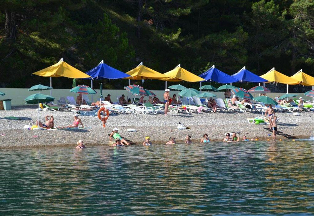 Пляж, из-за которого мы, если честно, ездим туда уже 5 лет подряд, закрытый, с идеально чистой водой, правда галечный, но нам это нравится.