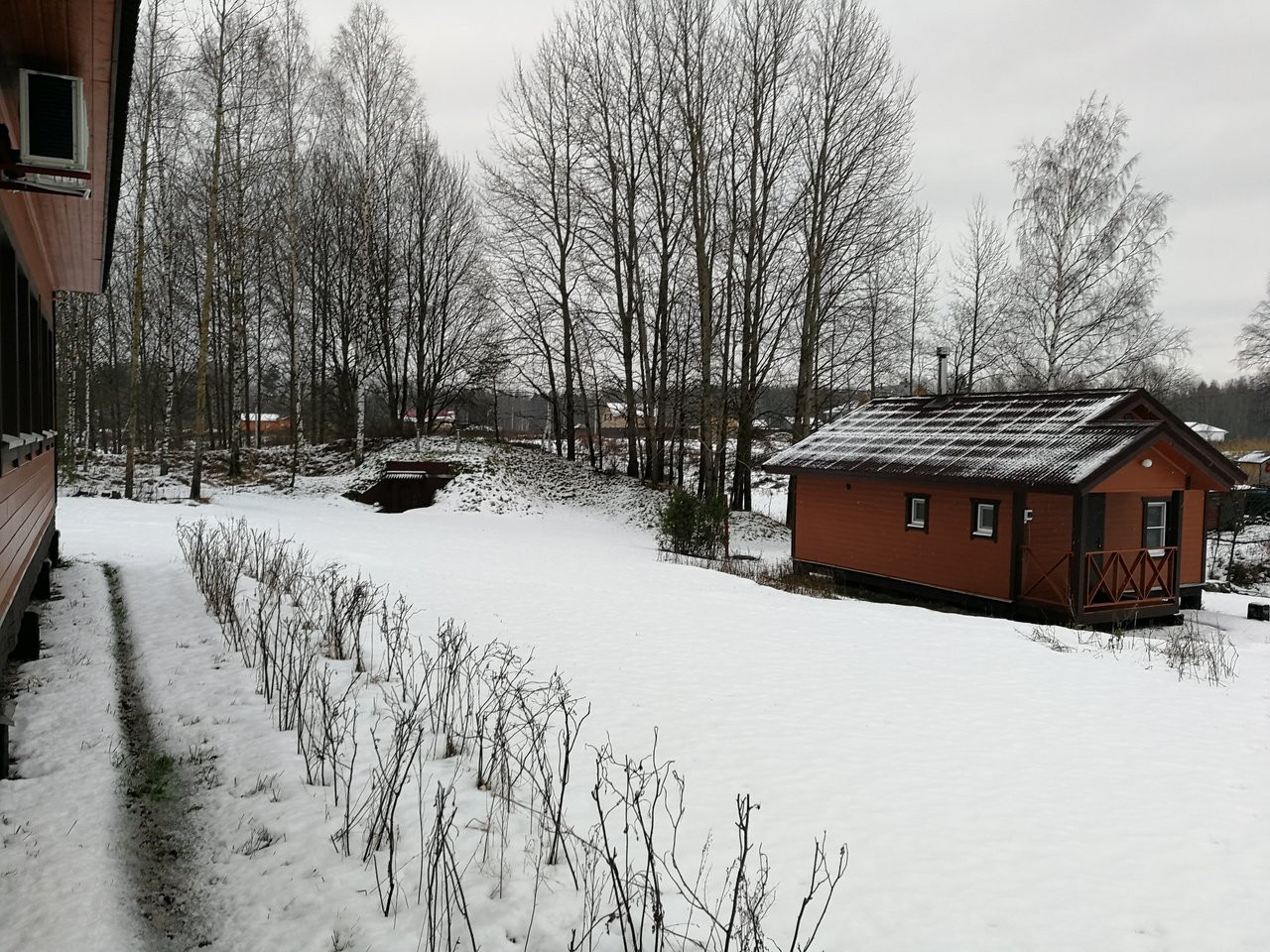 Отличная база для семейного отдыха. До р. Вуокса метров 500, но рядом есть небольшое озеро, где тоже можно и порыбачить и покупаться.