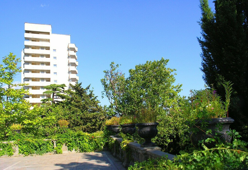 Он расположен в стороне от шумных трасс, в самом красивом и крупном комплексе садово-парковой архитектуры, гор и чистейшего лазурного побережья.