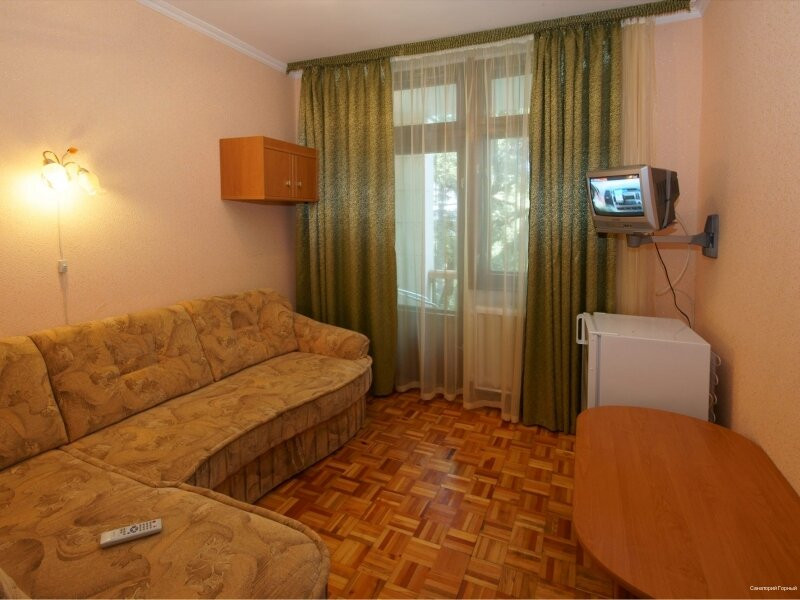 В санатории «Горный» имеется пять жилых корпусов разной этажности. В комнатах на южной стороне второго корпуса имеются кондиционеры. В пятом корпусе 1- местные и 2 - местные номера оснащены телевизором и холодильником, также в номере имеется душевая, санузел и лоджия. В первом корпусе в 1 - местных и 2 - местных номерах есть вся необходимая мебель, холодильник, умывальник, телевизор. В двухместных номерах есть выход на балкон. Все остальные удобства находятся на этаже. В пансионате «Горный» свой режим водоснабжения: холодная вода круглосуточно, а вот горячая – ежедневно по графику.