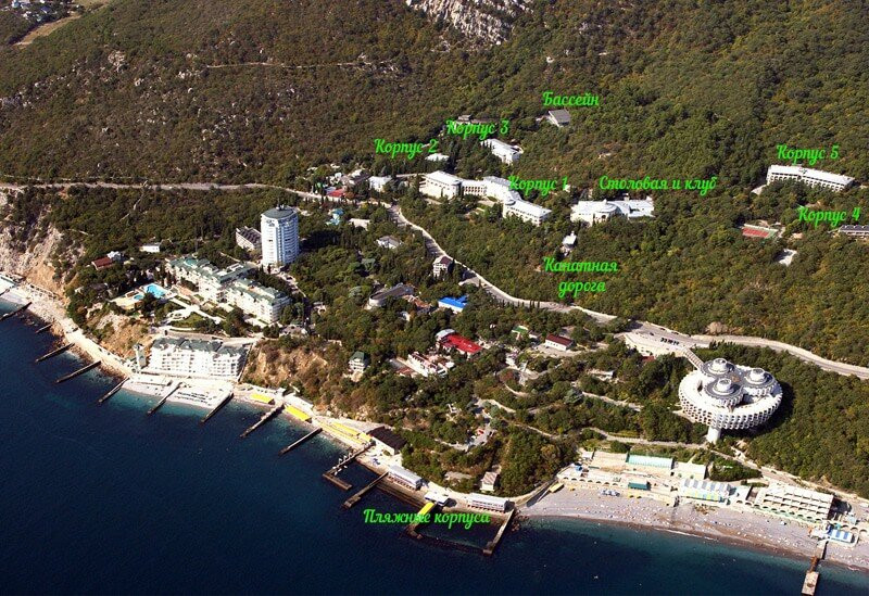 Санаторий «Горный» находится на южном побережье Крыма, в поселке - Ливадия. Поселок находится на горном склоне, который называется Могаби, и его характерная черта это большие перепады высот. Расстояние от поселка до Ялты – 8 км.