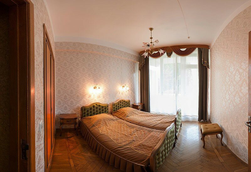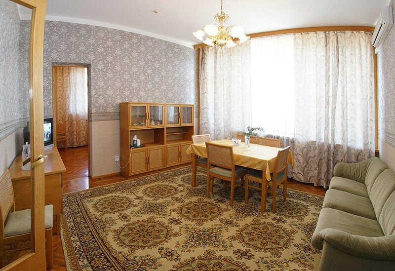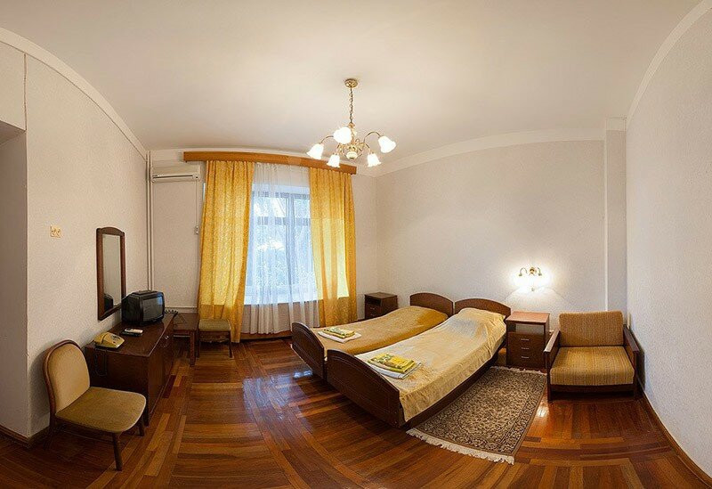 Нуу... На свой ценник точно не соответствуют, номерной фонд старый, мебель как поставили в СССР, так и используют. Кормят обильно, но очень просто и не эстетично.