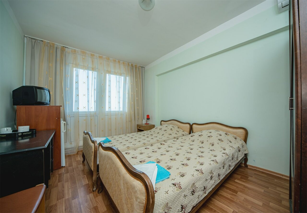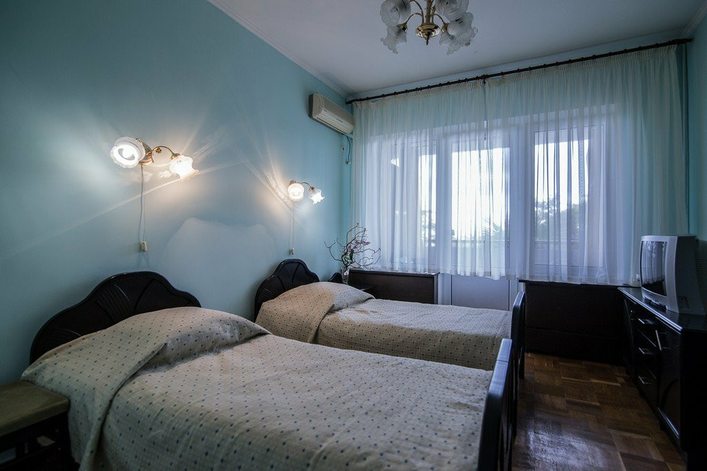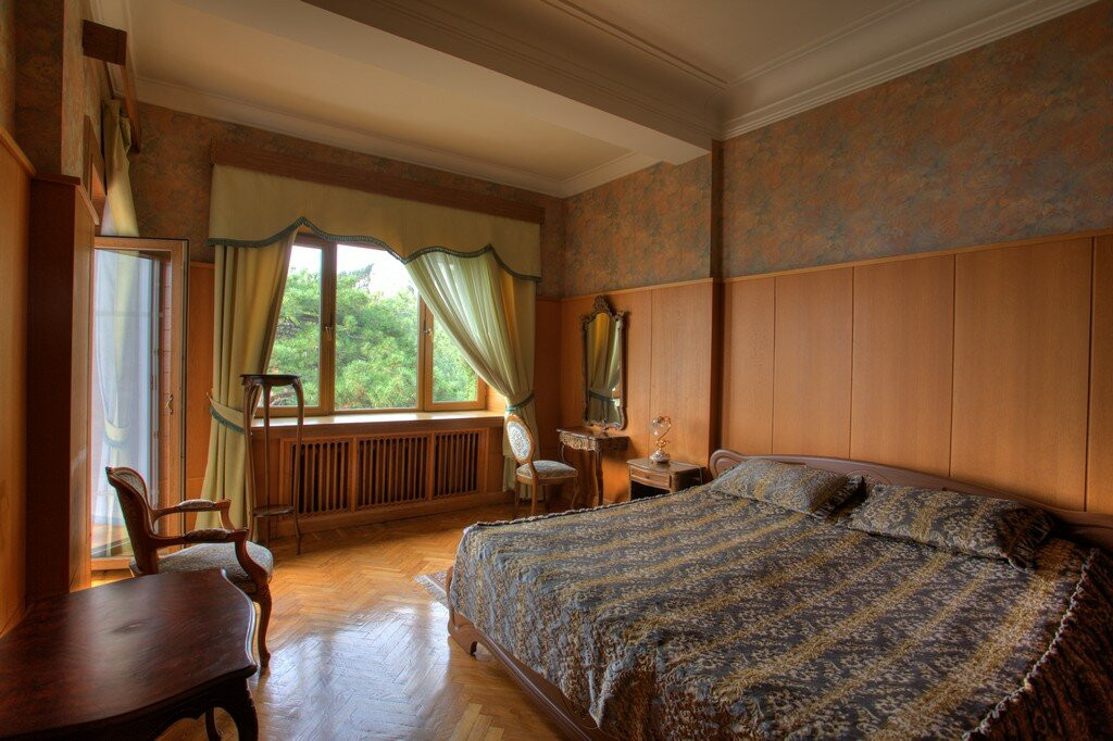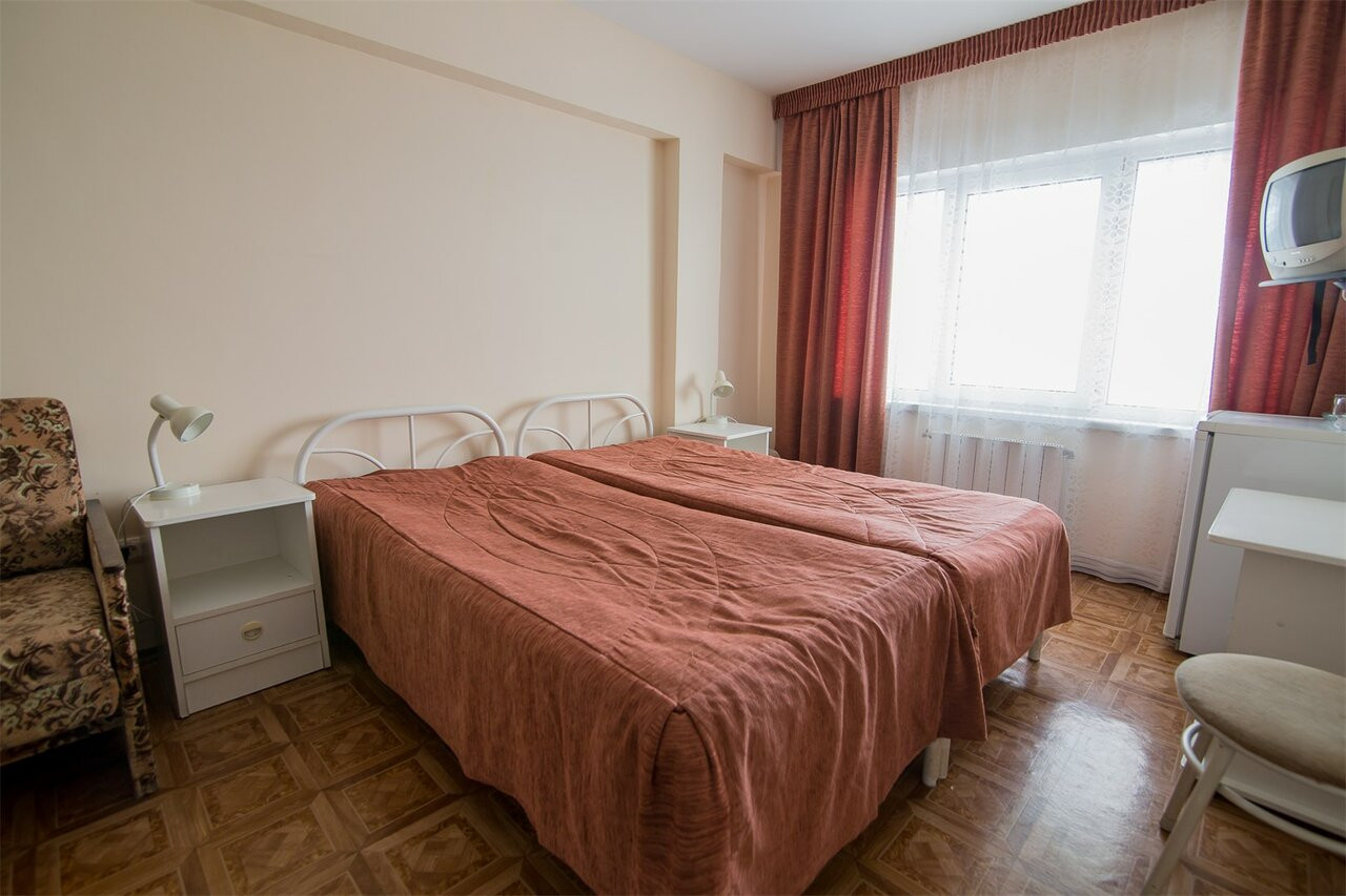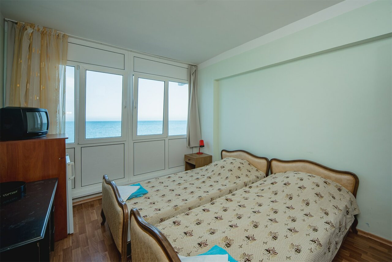 Ездили с 30.06.19 по 09.07.19. тур покупали у туроператора Библио глобус. Номер был в 6 корпусе номер 6. К тупоператору претенщий нет, все четко по времени. Я жуткий аллергик и моими приоритетами при покупке путевки были пляж с навесом и очень зеленая территория. Данный санаторий подходил под мой запрос. Территория прекрасна. За ней следят и ухаживают. Все чисто. Надоело солнце, есть много красивых мест где модно посидеть в тени. Море чистое. Пляж чистый. На пляже никто не курит и не бухает. Нет достающих продавцов как в Ялте или Алуште. Но наш номер поверг нас в ступор как мы только зашли. Вонь из канализации, оборванная штора, сломаный шкаф, резетка почти вываливаюшаяся из стены . Ребенок чуть ли не щаплакал и все повторял куда я его притащила. На просьбу привести все в нормальный вид недовольная женщина к корпусе где комят сначала назамила, но пришел сразу электрик и резетку починил. Плотник тоже пришел и попытался сделать шкаф, но он вилимо очень старый. В итоге двери у шкафа остались сломаными но болтающуюся ручку у двери подтянул. Штору нам так и не повесили, я еще два раща говорила женщине на ресепшен но та меня посылала к горничной. Горничная рчень славная бабушка, но она видимо одна и трудится как пчелка. Поэтому мы плюнули на бытовые неудобства. Ванна это отдельная тема. Это душ с ржавой дыркой. Весь пол щаливает водой и потом в ванной сильно воняет. Питание в санатории хорошее. Мы наедались. Особенно понравились супы. Очень вкусные. Если ьы не наш номер обломка, то поставила бы санаторию твердую четверку. Природа, месторасположение, чистое море. Но сразу видно, что у санатория нет хозяина. Вот надо приложить усилия и из этого места модно сделать просто конфетку. А так вилимо люди ездят и ладно. Так и хотелось им свои идеи и предложения написать. Персонал в основном вежливый. Женщины в столовой очень стараются. Все улыбаются, доброжелательны. Еще один минус- это лечение. Процедуры назначают от балды и самые дешовые. В лечебном корпусе на ресепшен сидит женщина с манерой общения " да задолбали вы меня". Вывод мой такой. Кто любит тишину, прекрасные экскурсии, чистый и спокойный пляж то я это место порекомендую. Но уважаемые руководители!!!! Развивайте это прекрасное место. Ну прямо стыдно за страну. Столько сказочных мест и такой пофигизм.