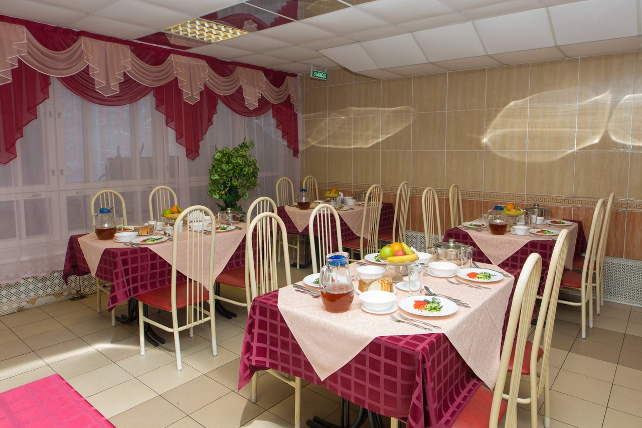 Постояльцы могут заказать в столовой комплексное трехразовое питание и диетическое меню в соответствии с предписаниями врача. Бар приглашает посетителей отведать легкие закуски и коктейли.