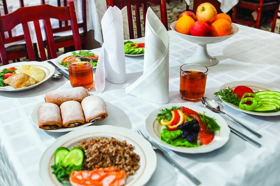 В санатории «Бештау» организовано диетическое питание по 14-дневной системе «меню-заказ». Еда готовится на пару из сертифицированных продуктов от местных производителей под наблюдением врача-диетолога.