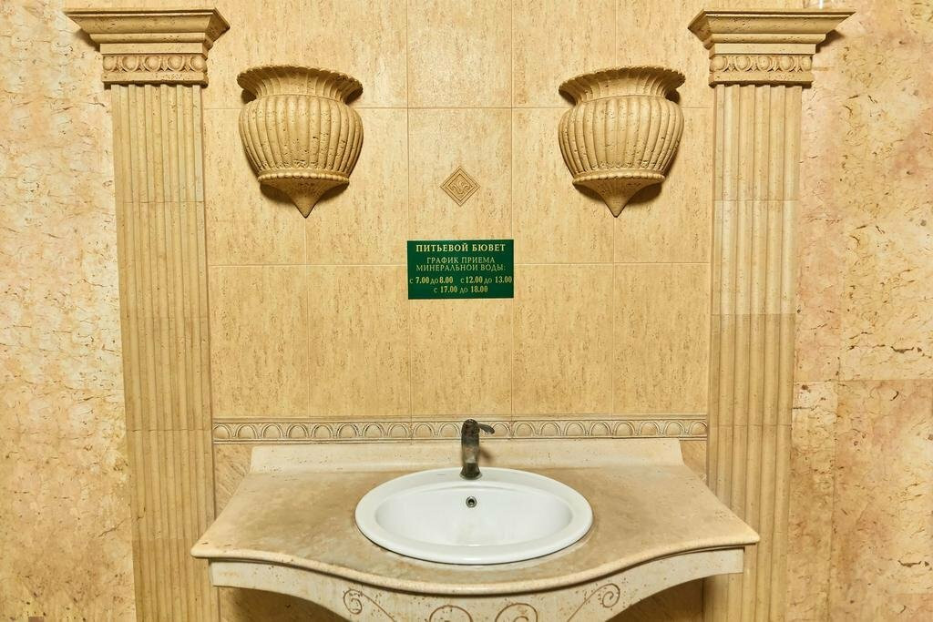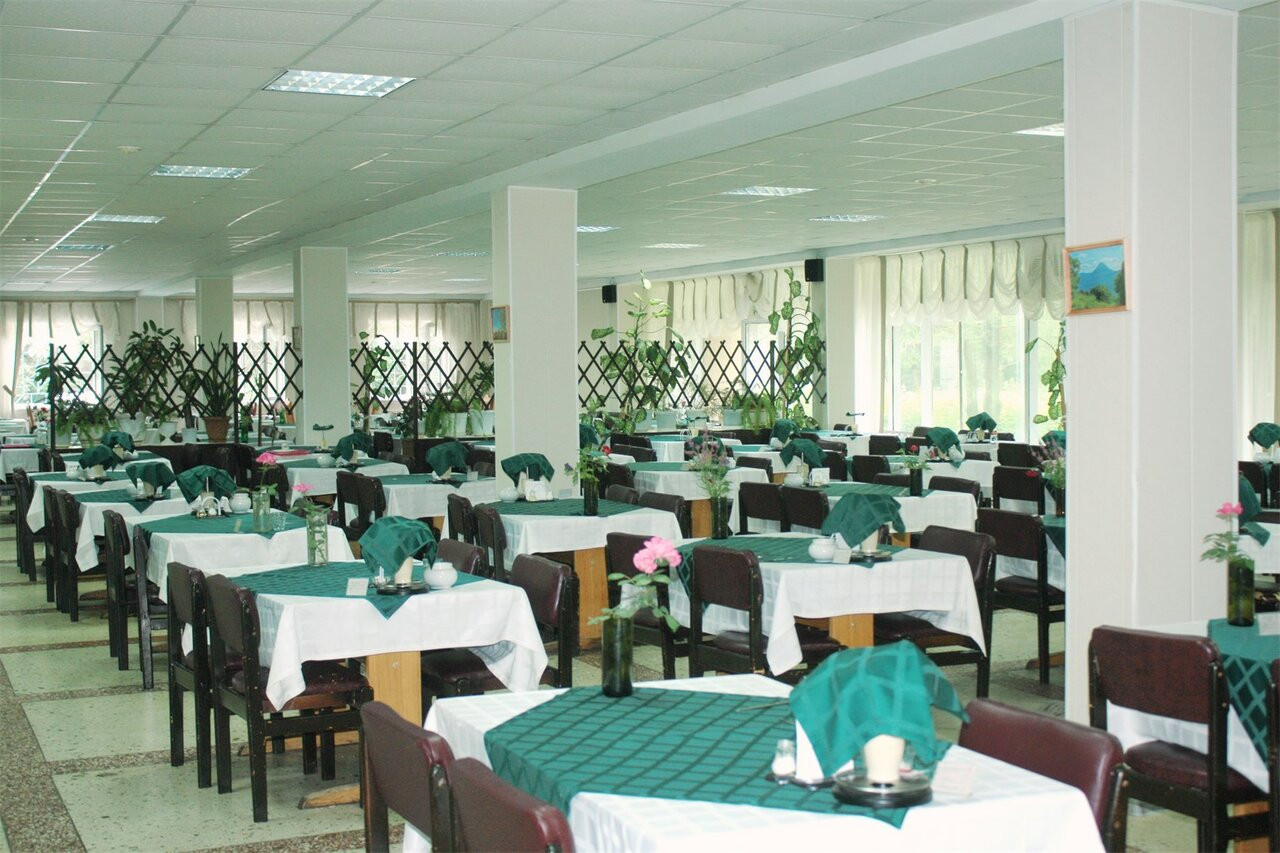 Питание: 3-разовое (диетическое, заказное). Есть кафе-бар. Питьевой бювет минеральной воды "Новотерская целебная" находится в вестибюле спального корпуса санатория.